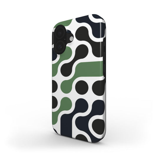🟢 Green & Black Retro Tech Pattern Phone Case – Minimalist Circuit Design | Phone Case
