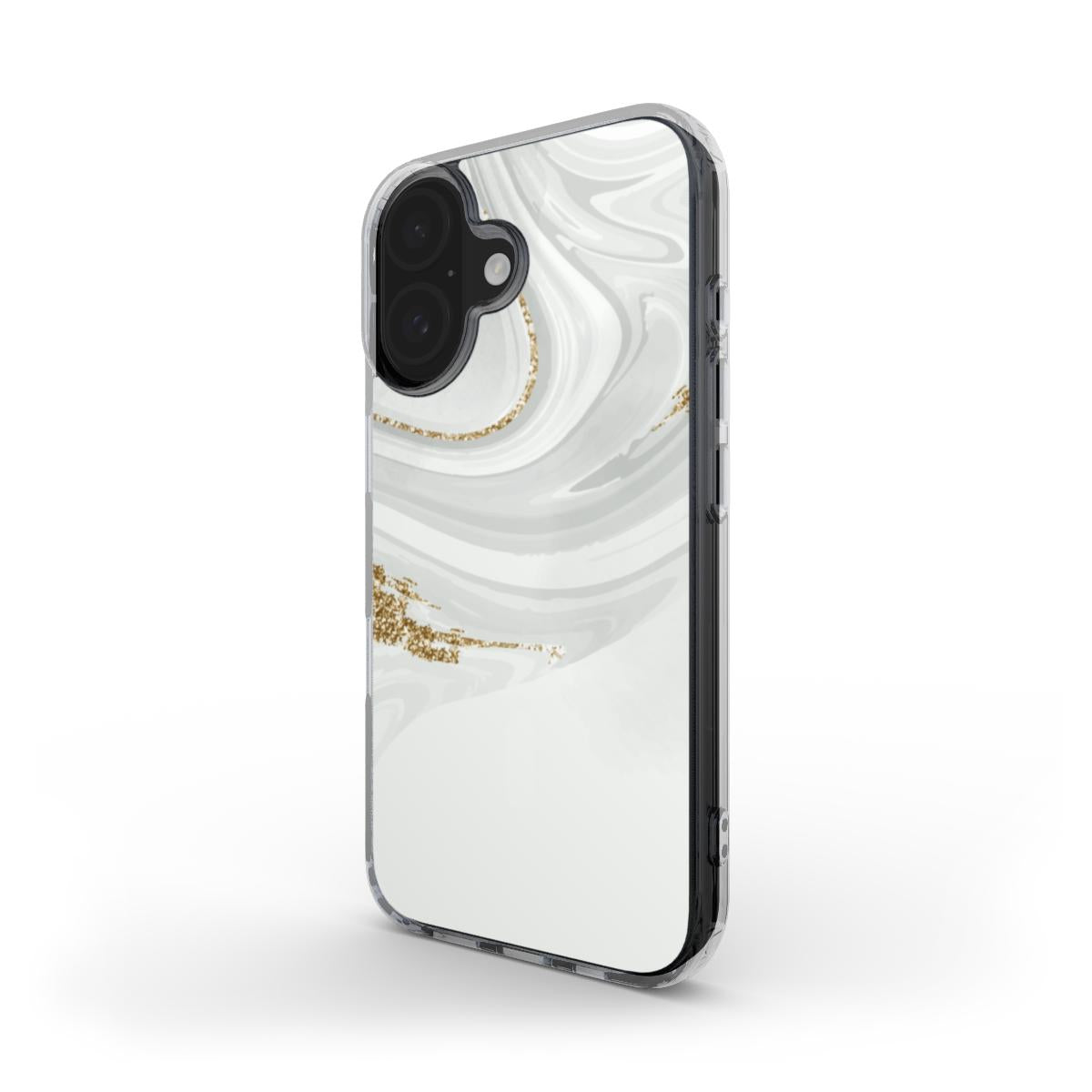 Refined and radiant, this white marble phone case features soft swirling textures and delicate gold glitter accents. Designed for modern minimalists who love a clean, upscale aesthetic, it offers timeless luxury with everyday practicality. Lightweight yet protective, it’s the perfect statement of quiet elegance.